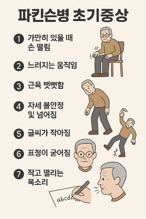 “요즘 따라 걸음이 느려졌네?”, “왜 이렇게 손이 떨리지?” 하는 증상이 반복된다면 반드시 확인해봐야 합니다.